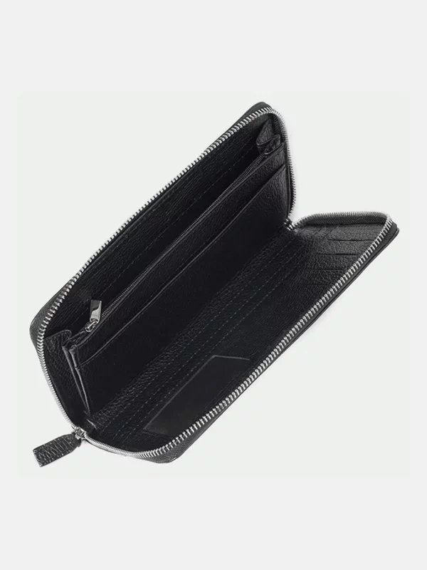 Гаманець клатч з зернистої натуральної шкіри чорного кольору