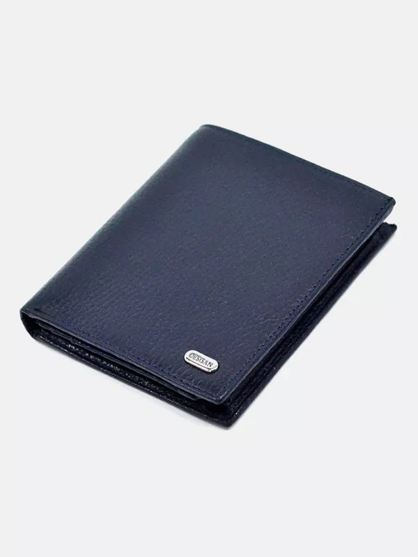 Шкіряне компактне вертикальне портмоне у синьому виконанні