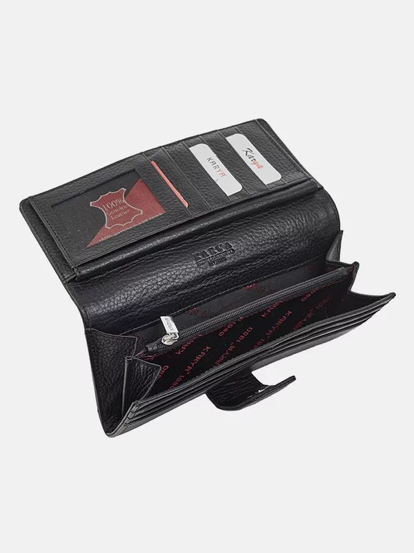 Женский кошелёк K-8445 – грамотный вариант в сочетании с любым стилем. Изготовлен из фактурной натуральной кожи флотар чёрного цвета. Аксессуар неприхотлив в уходе, имеет аккуратный внешний вид, качественный пошив, пользуется большой популярностью на украинском рынке. Добавит элегантности практически любому образу. Великолепный выбор в качестве подарка для любой женщины. Страна производитель – Турция.