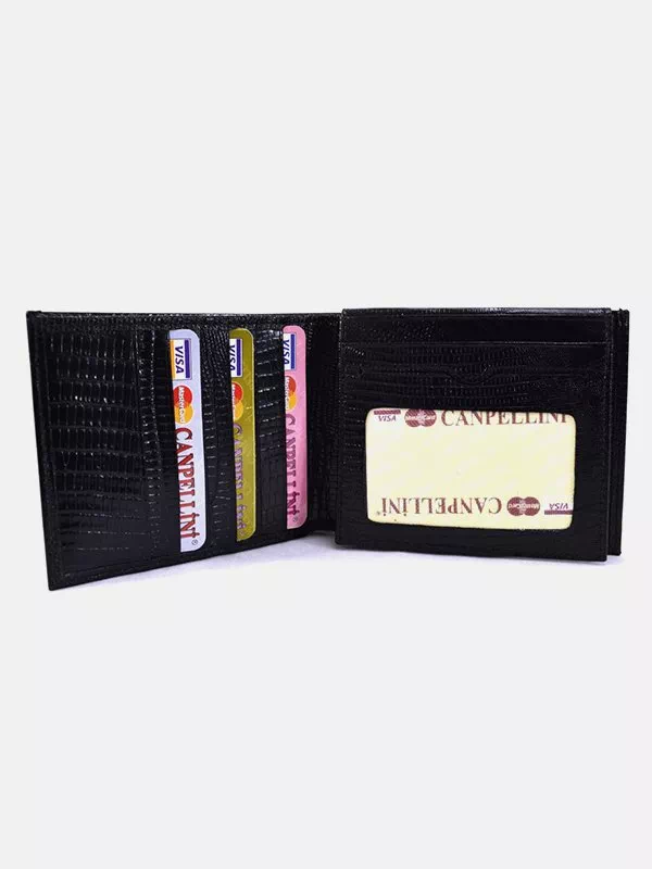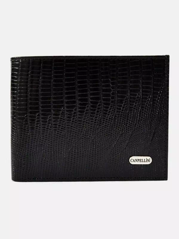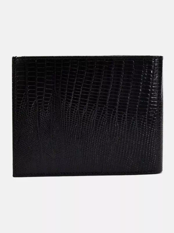 Портмоне из черной фактурной натуральной кожи «под рептилию»