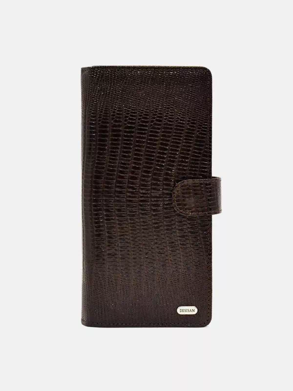 Вертикальный кошелек из коричневой натуральной кожи