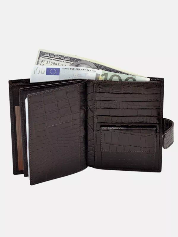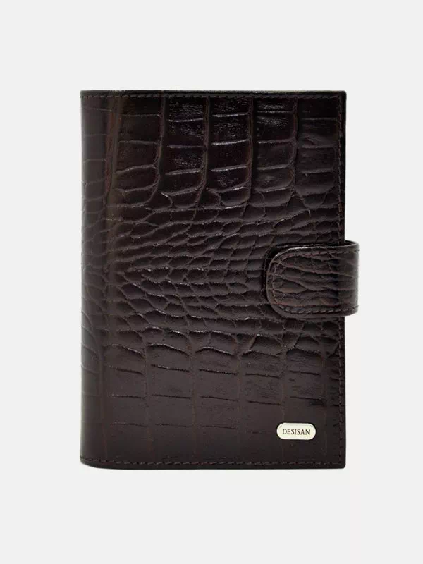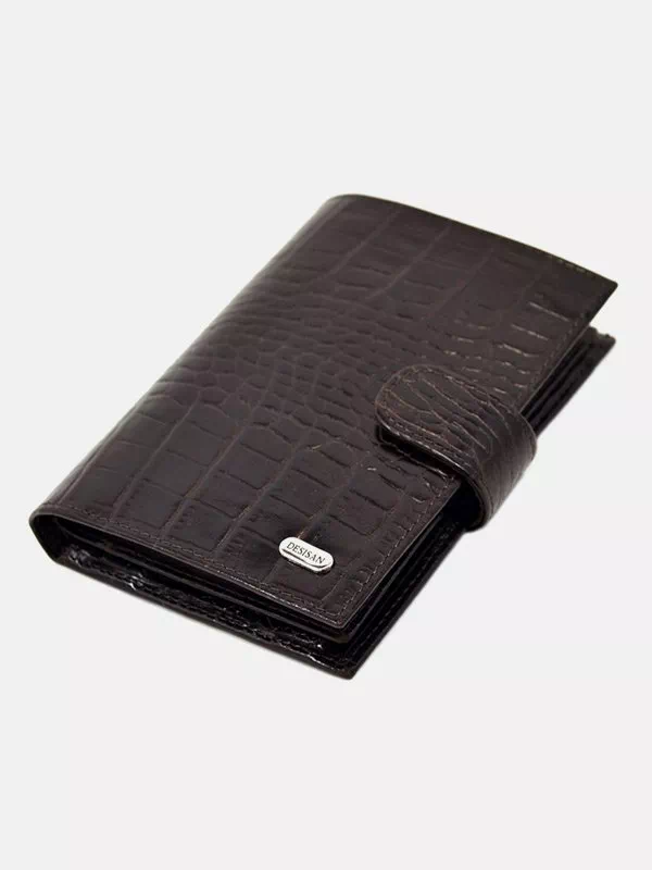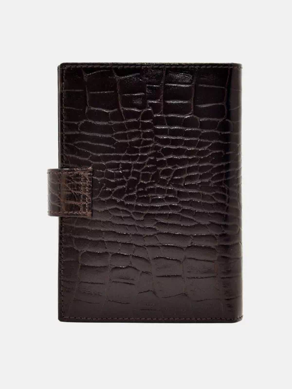 Вертикальный кошелек из коричневой фактурной кожи «под крокодила»