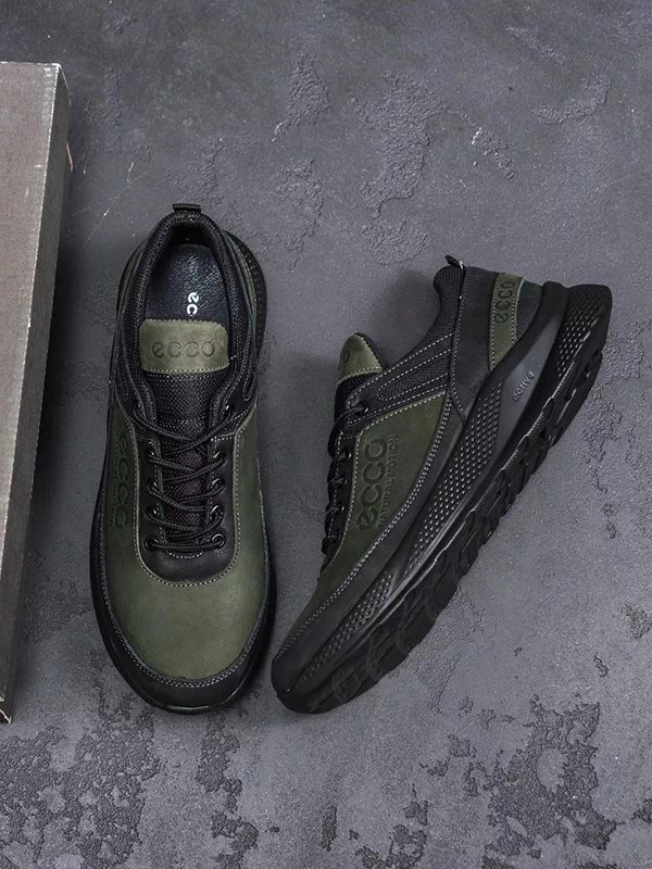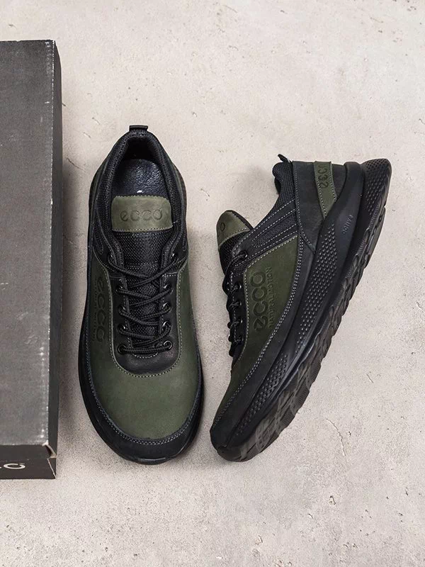 Вишукані чоловічі кросівки оливкового-чорного кольору на будь-які випадки життя.