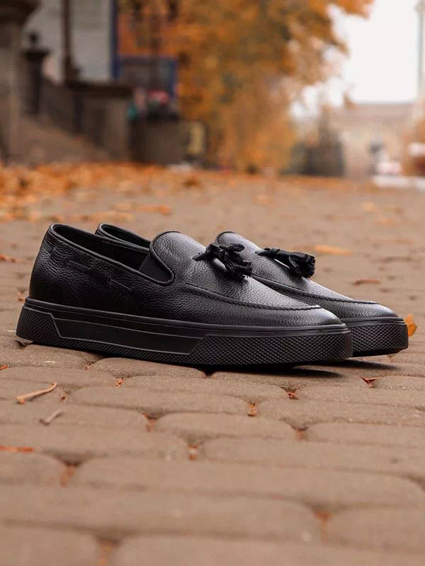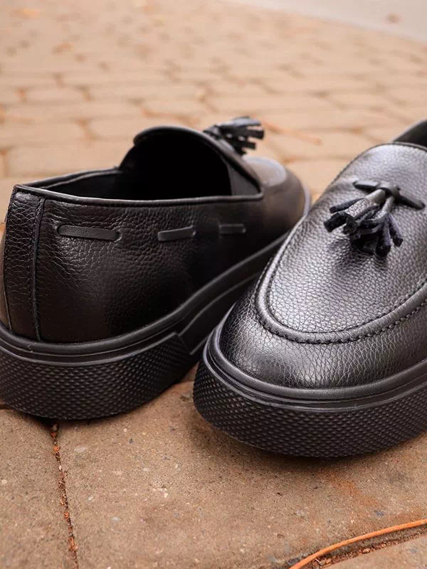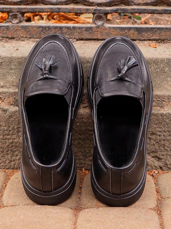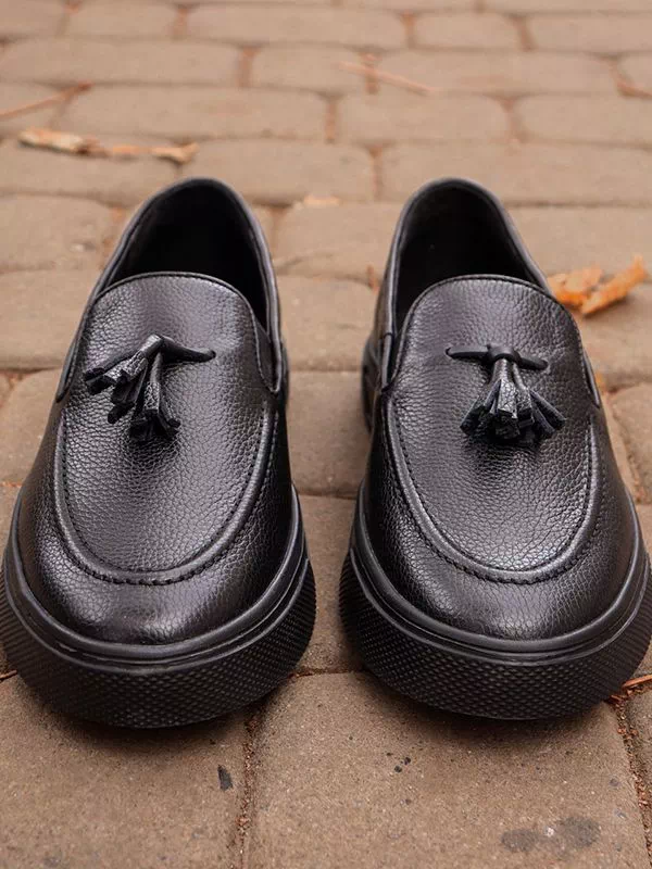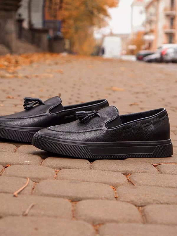 Потужні чоловічі лофери з китицями у чорному виконанні на всі випадки життя.