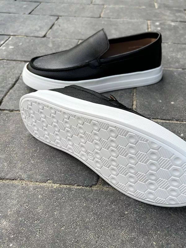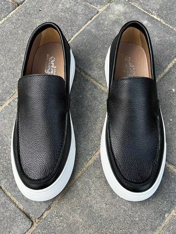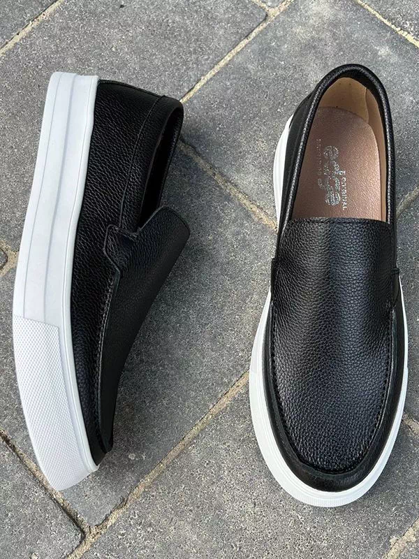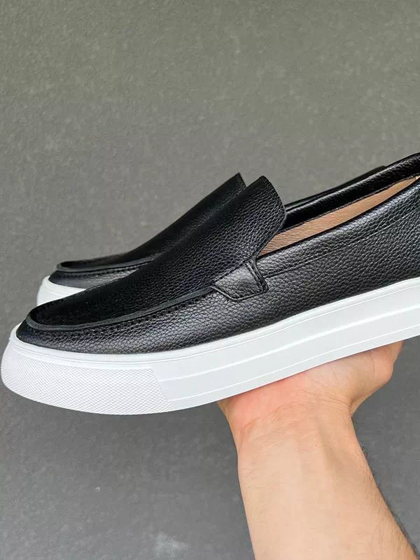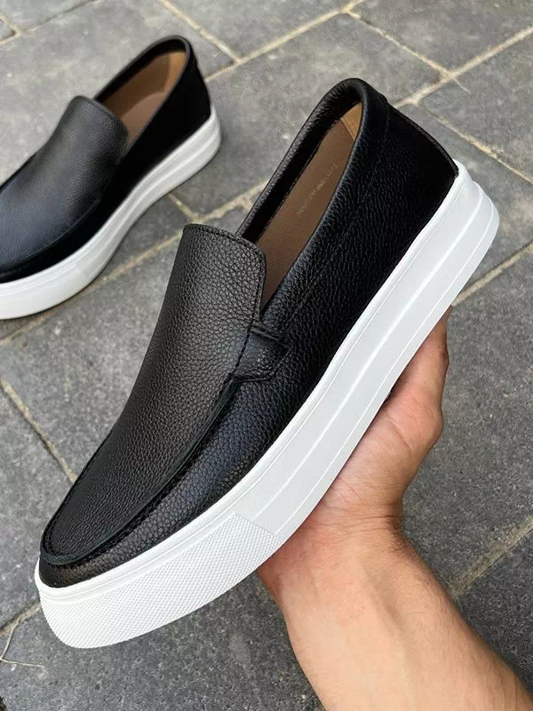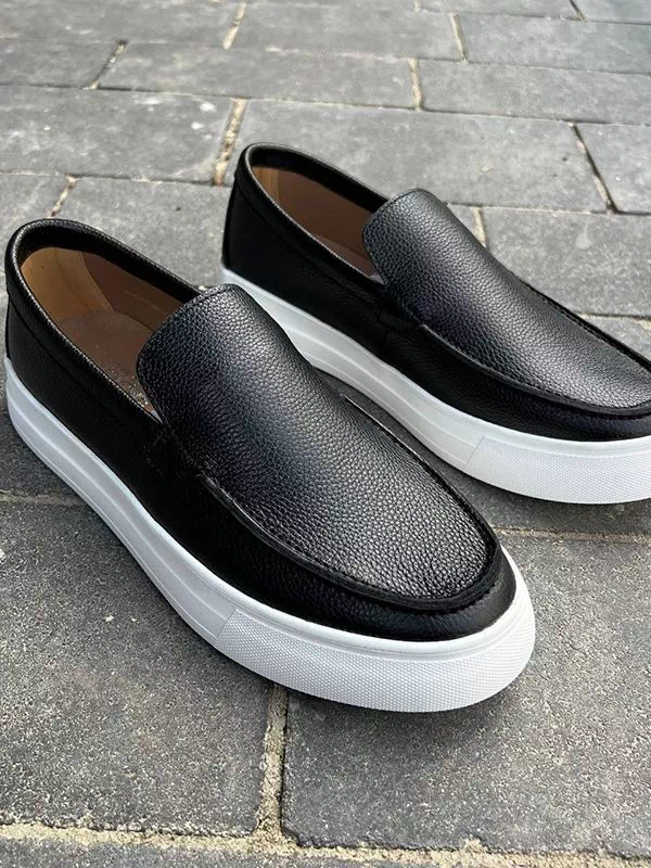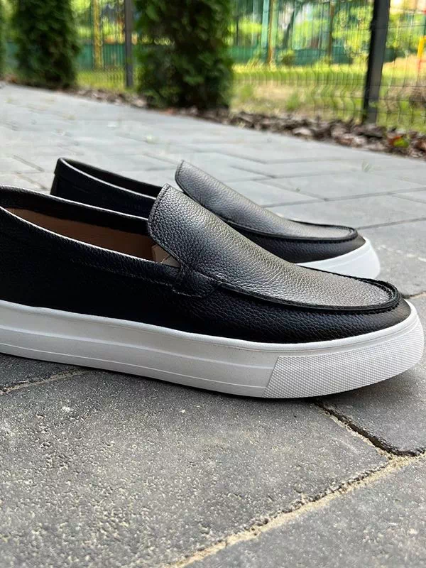 Элегантные мужские лоферы на толстой подошве, в бело-черном исполнении на все случаи жизни.