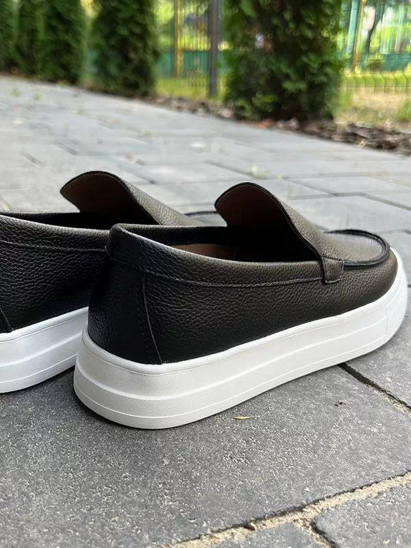 Елегантні чоловічі лофери на товстій підошві, у біло-чорному виконанні на всі випадки життя.