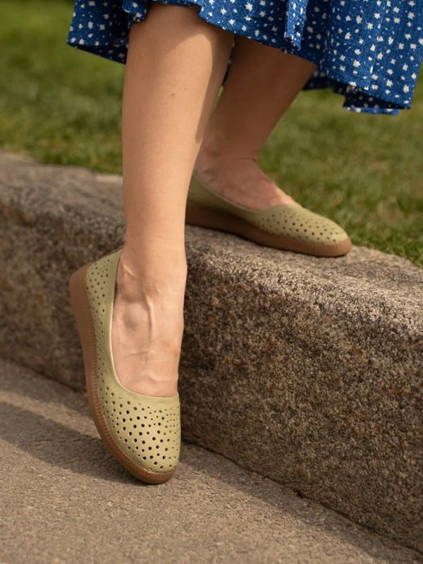 Элегантные летние женские балетки оттенка «авокадо» на любые случаи жизни.