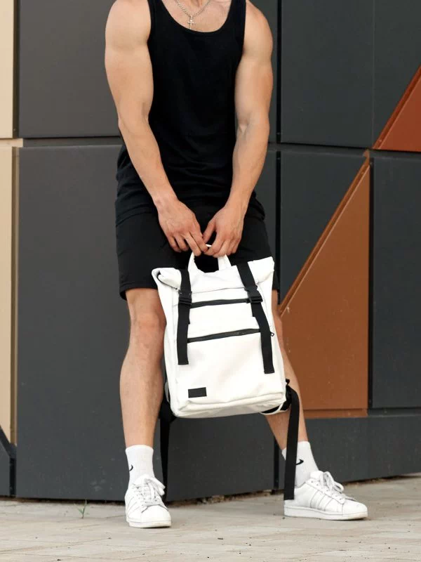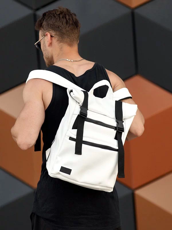Місткий рюкзак-ролл чорного кольору з еко-шкіри