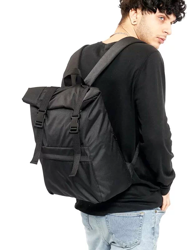 Компактный коричневый текстильный рюкзак-ролл