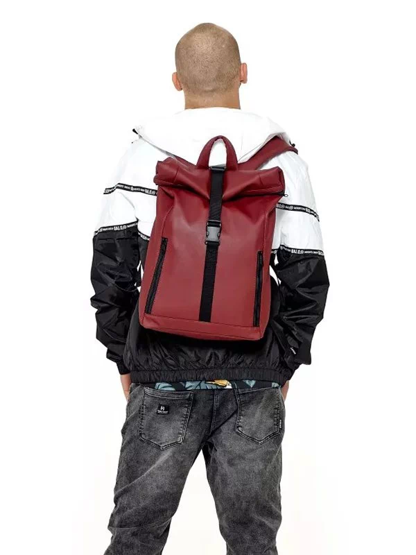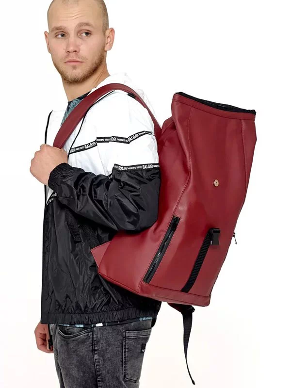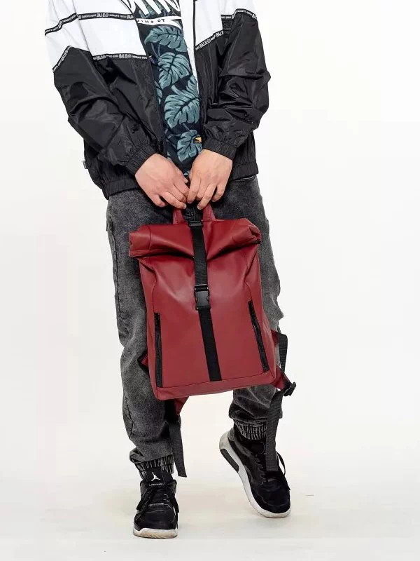Вместительный рюкзак-ролл чёрного цвета из эко-кожи
