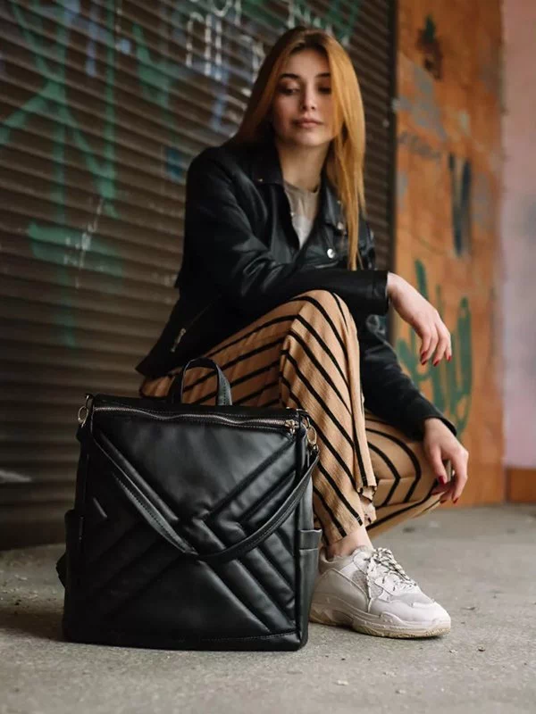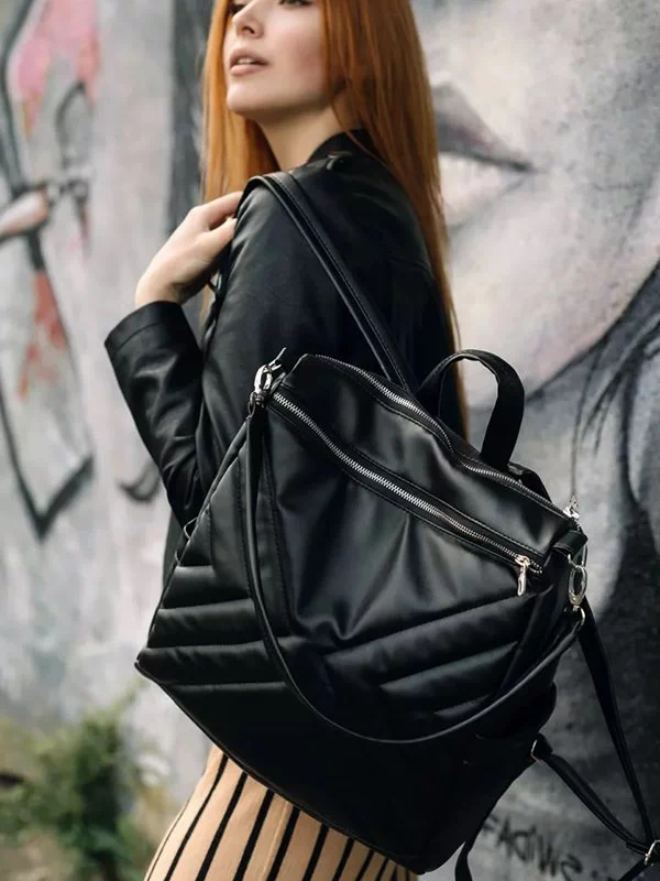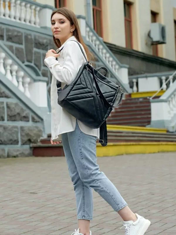 -34%Шикарний жіночий рюкзак-сумка у чорному виконанні на всі випадки життя.
