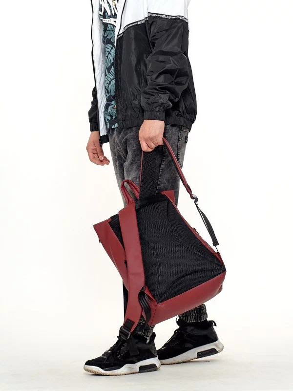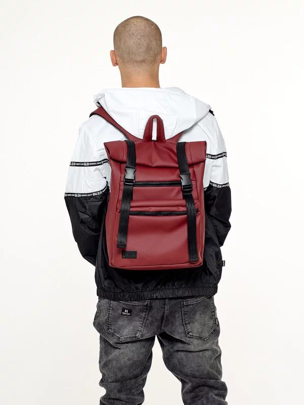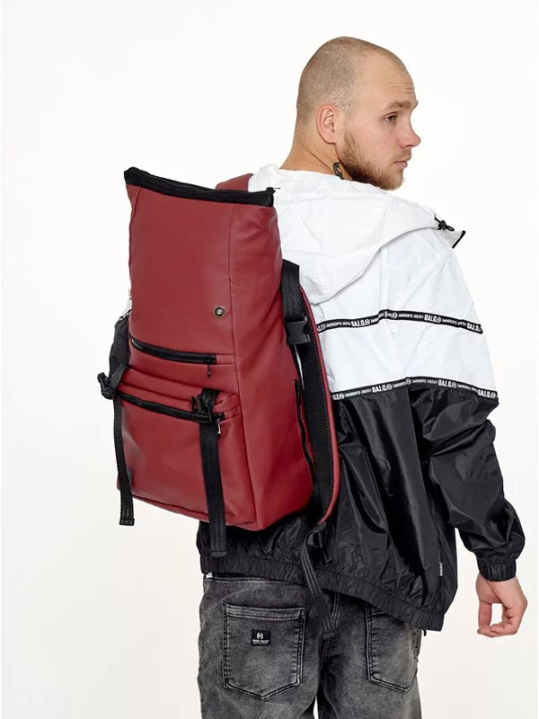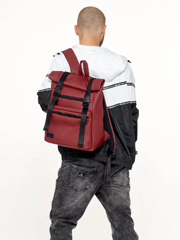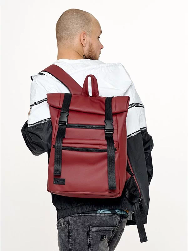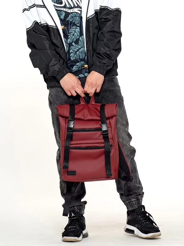 Місткий рюкзак-ролл з еко-шкіри темно-коричневого кольору