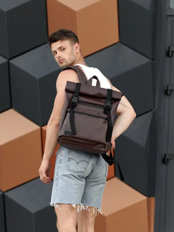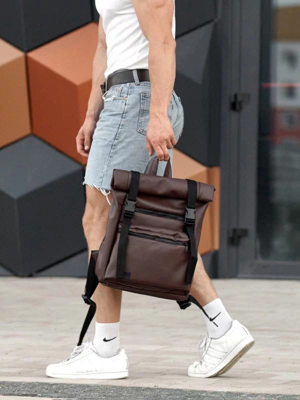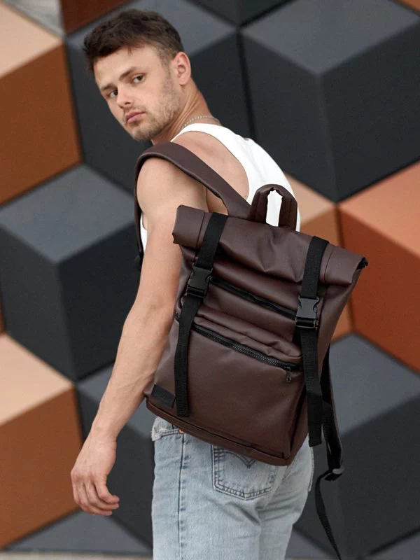 Місткий рюкзак-ролл з еко-шкіри бордового кольору