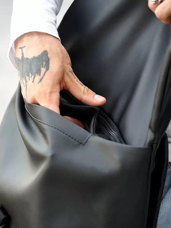 Універсальний рюкзак чорного кольору з еко-шкіри