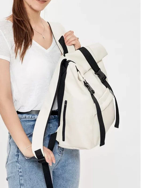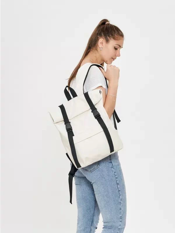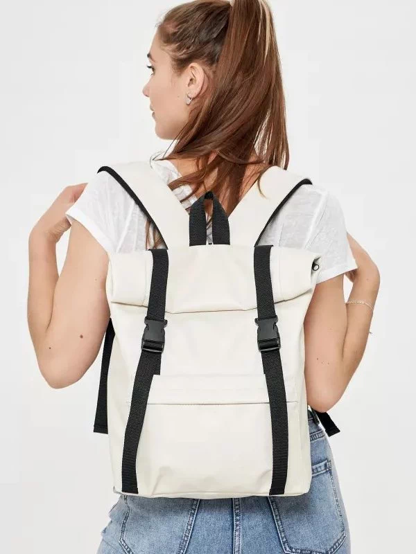 Компактний рюкзак-ролл з еко-шкіри у бежевому виконанні