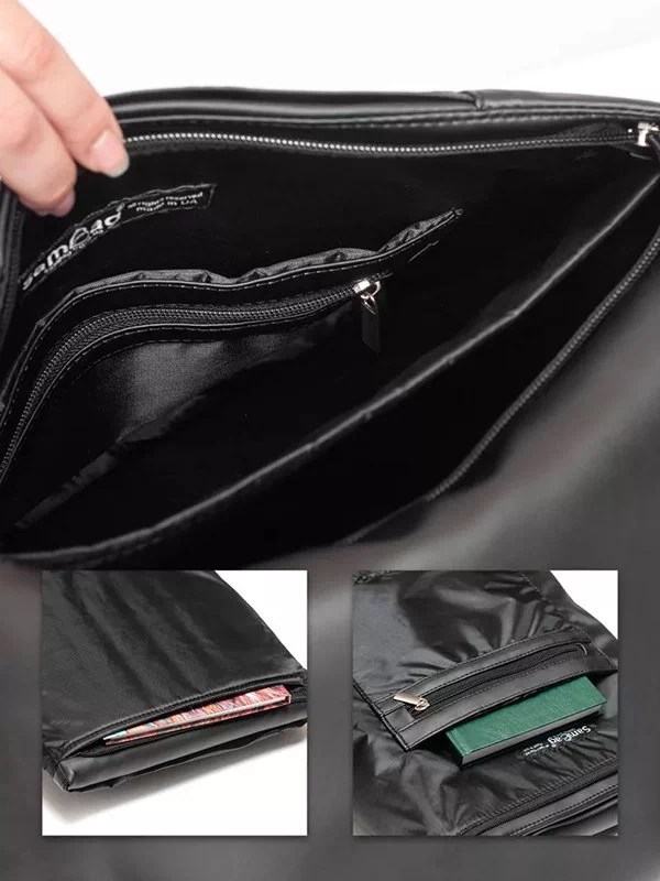 • спереду – дві вертикальні кишені на блискавці, на спинці – кишеня на блискавці;