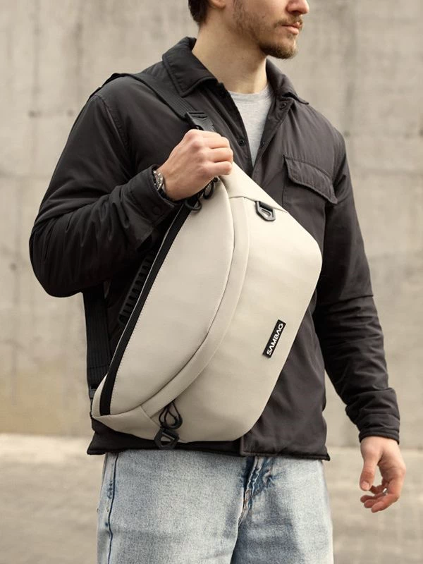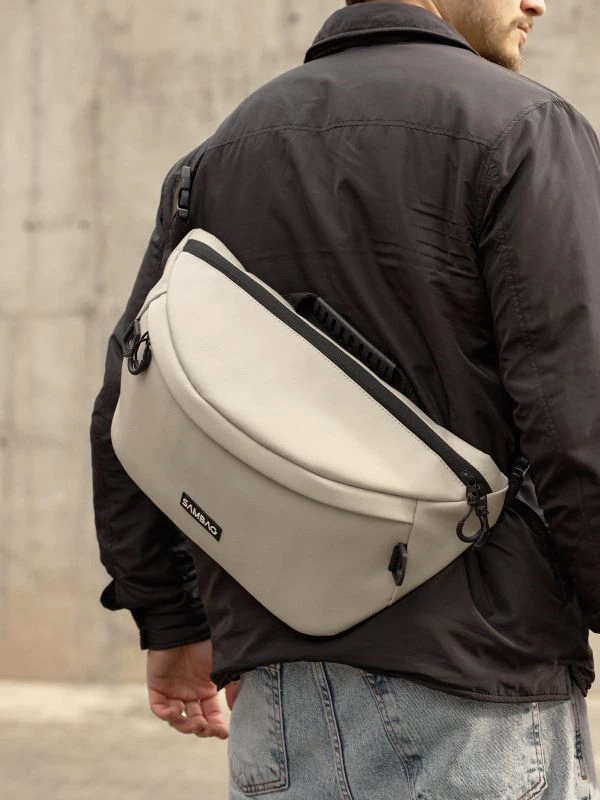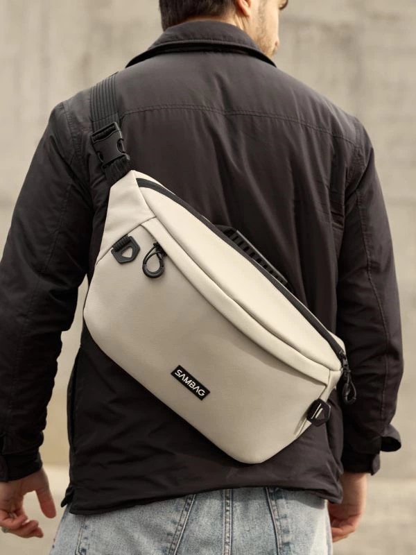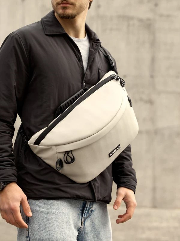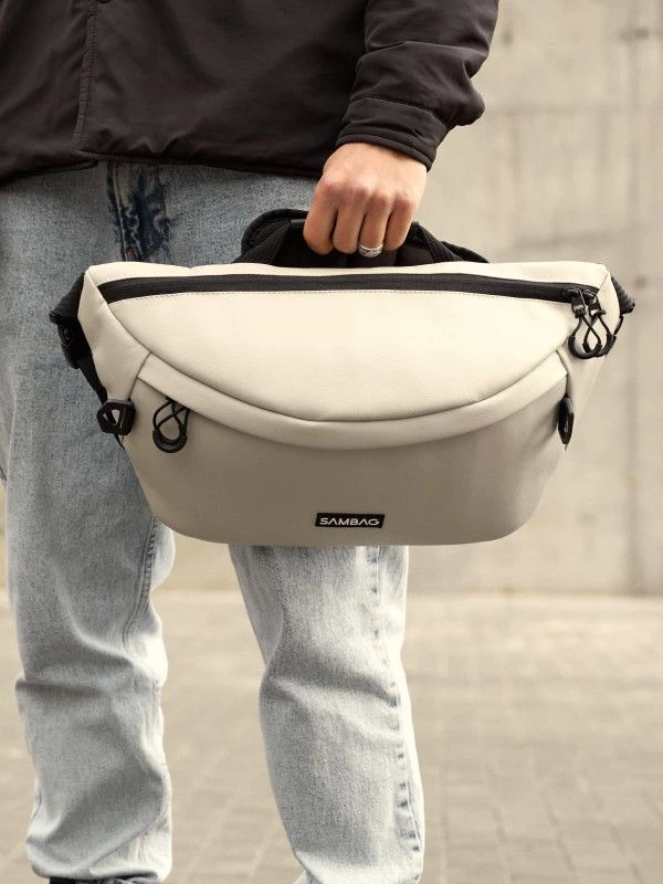 -37%Шикарна велика чоловіча сумка-бананка вершкового відтінку на будь-які випадки життя.