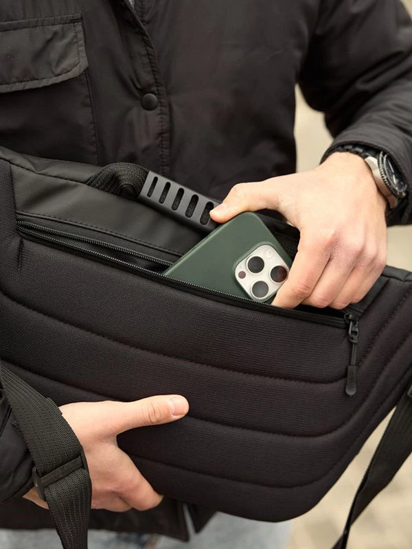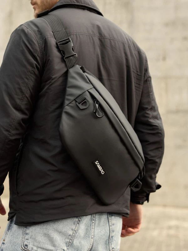 -37%Елегантна велика чоловіча сумка-бананка у чорному виконанні на всі випадки життя.
