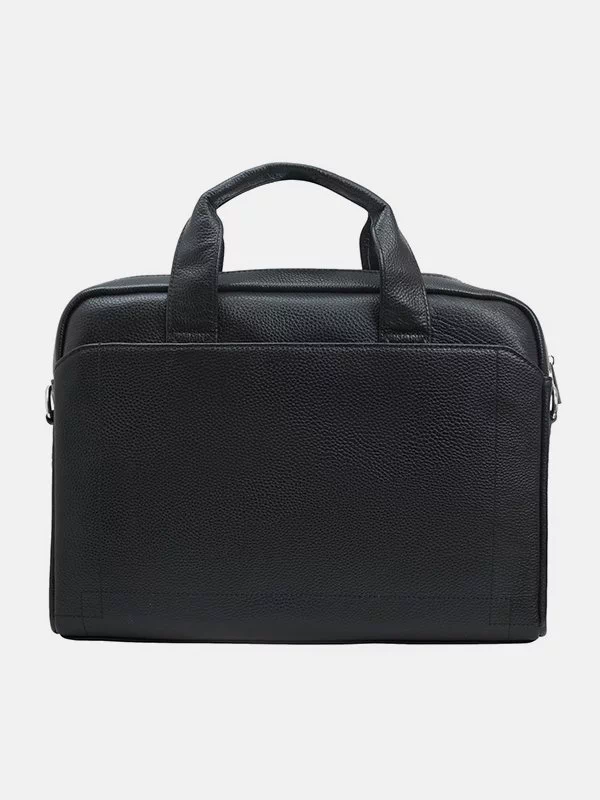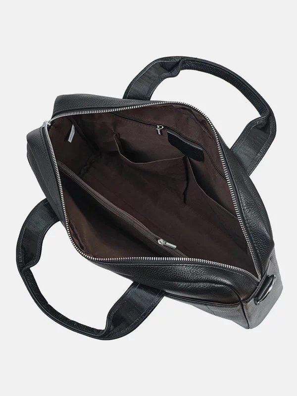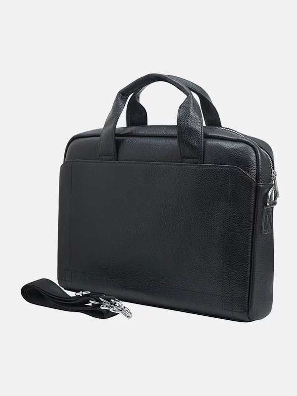 Чёрная сумка для ноутбука из гладкой натуральной кожи