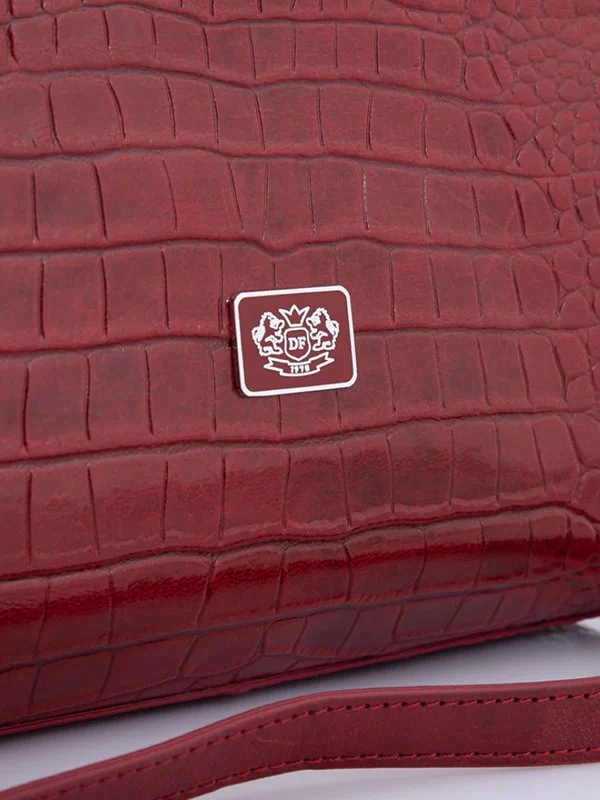Женская сумка DF-593 – отличный вариант для различных мелочей (косметики, денег, ключей, павербанков, наушников, смартфонов, зарядных устройств и т.п.). Пошита из фактурной натуральной кожи «под крокодила» красного цвета. Сумка неприхотлива в уходе, имеет аккуратный внешний вид, качественный пошив. Выгодно подчеркнет практически любой образ. Страна производитель бренда – Германия.
