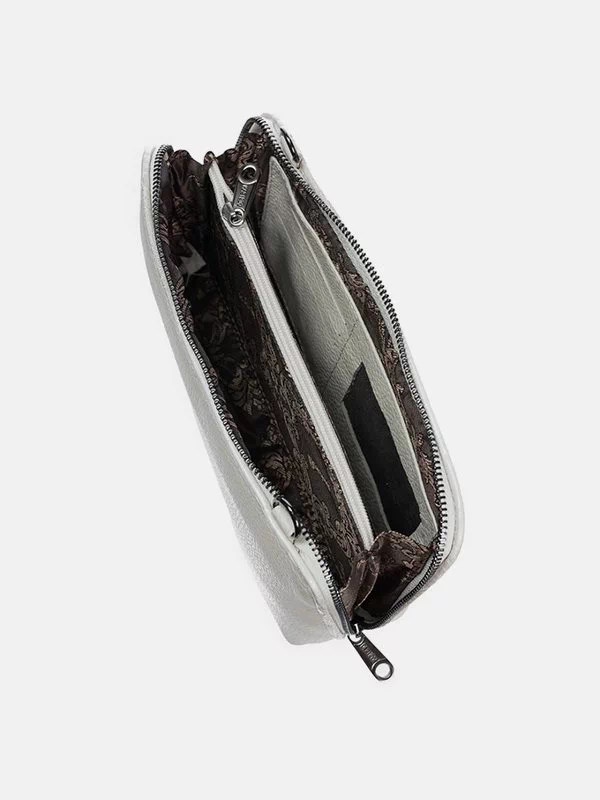 Жіноча сумка D-1281 – відмінний варіант для грошей, будь-яких дрібниць (косметики, ключів, павербанків, навушників, смартфонів, зарядних пристроїв тощо). Пошита з зернистої натуральної шкіри флотар у білому виконанні. Сумка невибаглива за доглядом, має ефектний зовнішній вигляд, якісний пошив. Додасть елегантності практично будь-якому образу. Країна виробник – Туреччина.