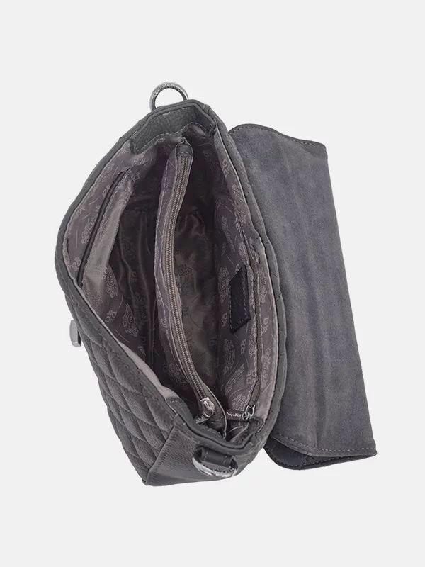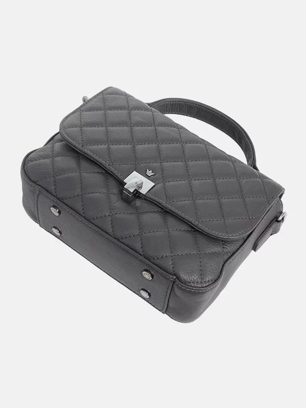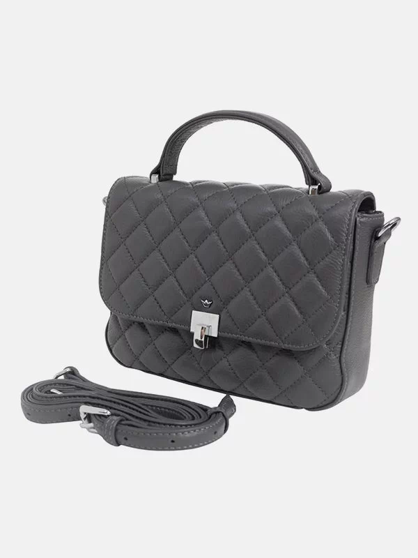Женская сумка DF-722G – удачный выбор для различных мелочей (косметики, денег, ключей, павербанков, наушников, смартфонов, зарядных устройств и т.п.). Пошита из стеганой натуральной кожи графитового оттенка. Кроссбоди неприхотлива в уходе, имеет аккуратный внешний вид, качественный пошив. Выгодно подчеркнет практически любой образ. Страна производитель бренда – Германия.