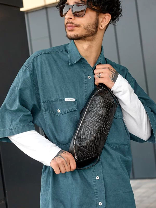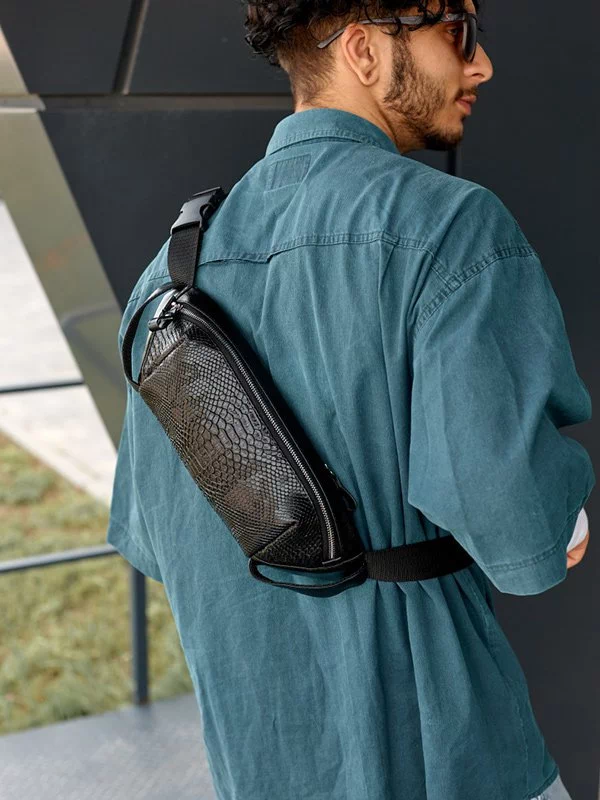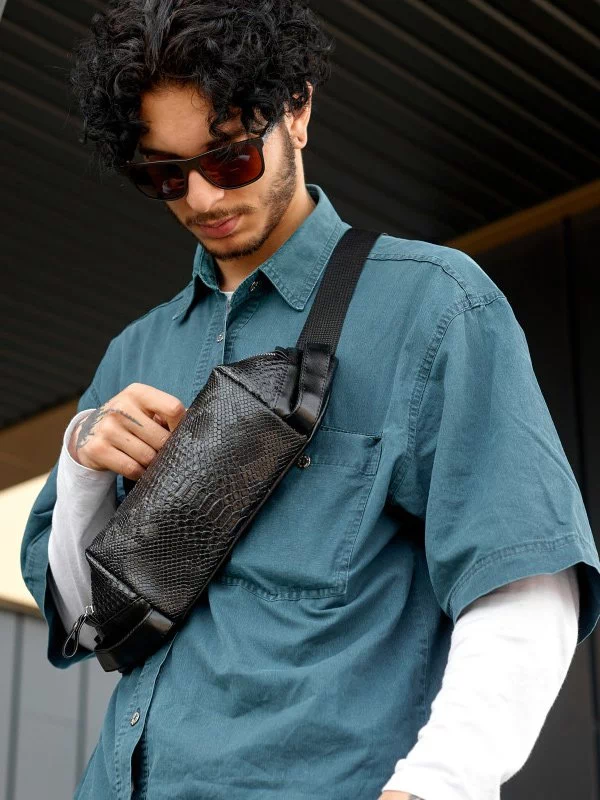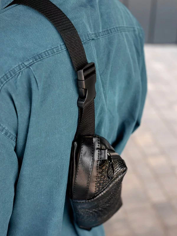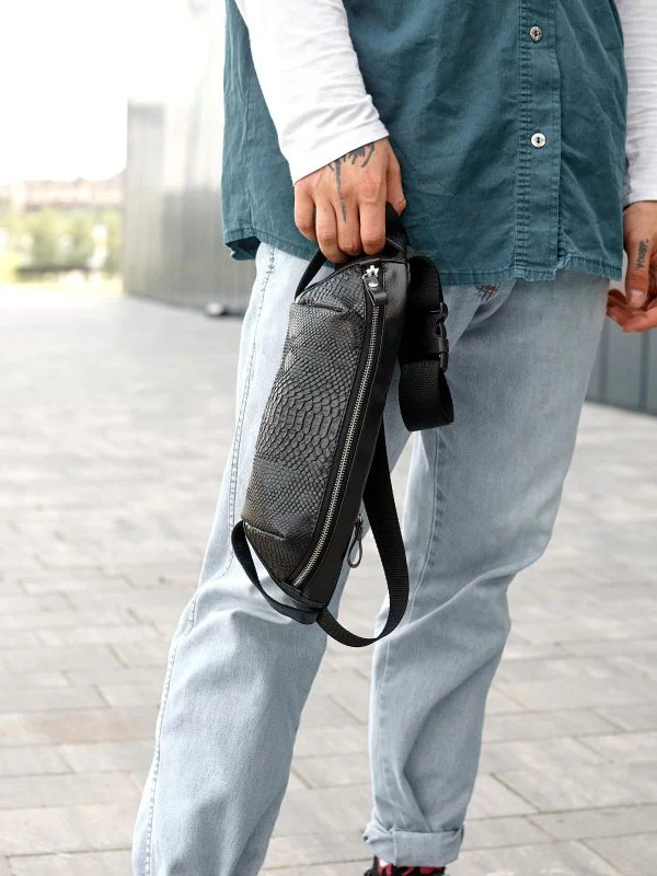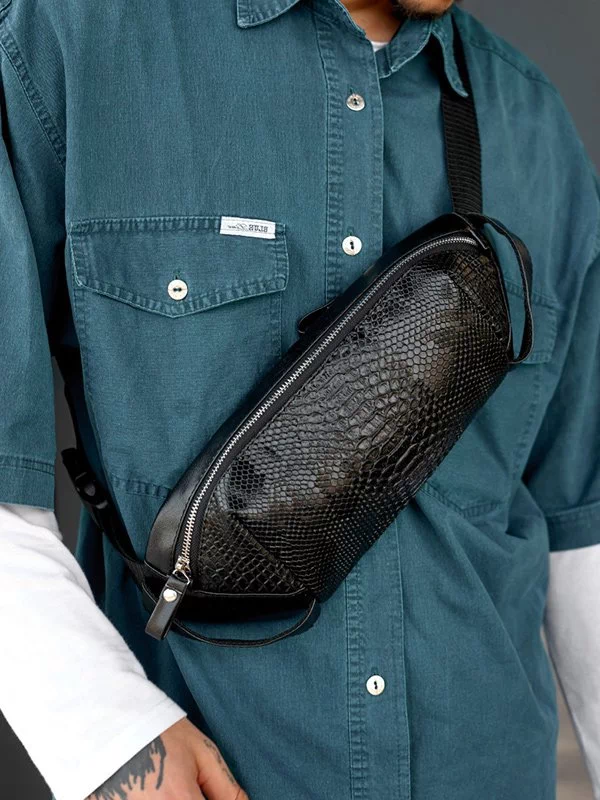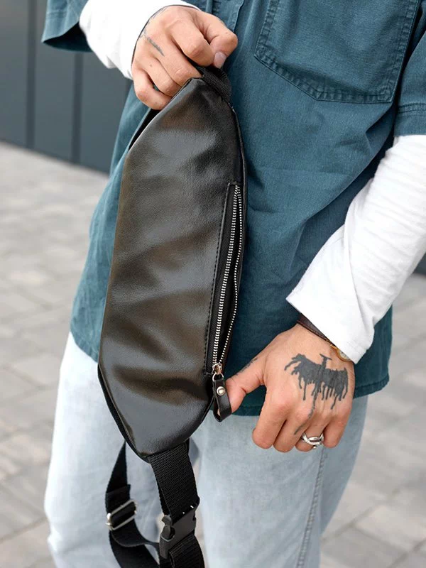 Яскрава чоловіча сумка-бананка чорного кольору на будь-які випадки життя.