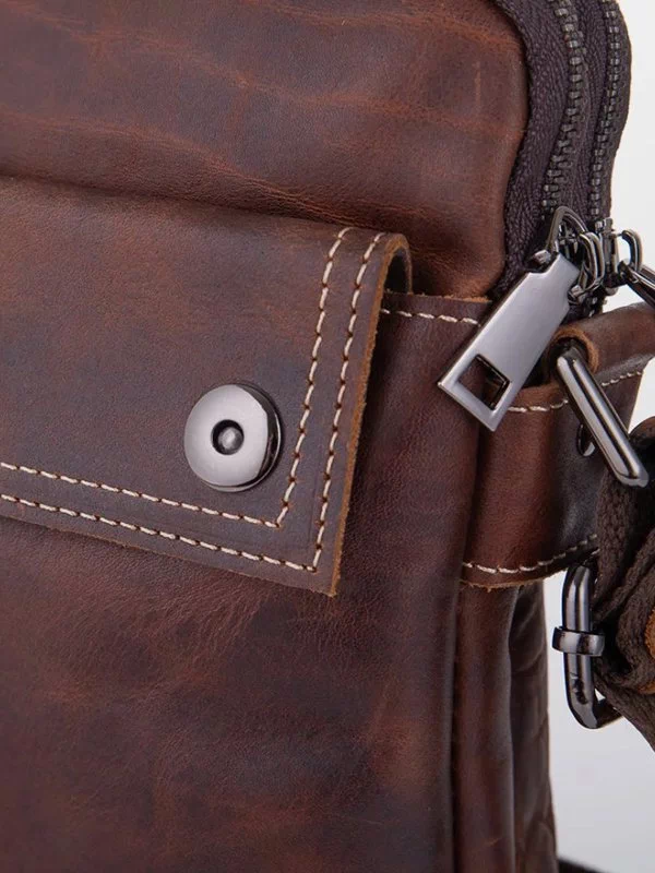 Чоловіча сумка через плече BB-859 – оптимальний варіант для грошей, будь-яких дрібниць (ключів, павербанків, навушників, смартфонів, зарядних пристроїв тощо). Виготовлена з вінтажної натуральної шкіри коричневого кольору. Сумка невибаглива за доглядом, має акуратний вигляд, якісний пошив. Месенджер користується значною популярністю на українському ринку. Незамінний та зручний аксесуар для щоденного використання. Країна виробник – Китай.