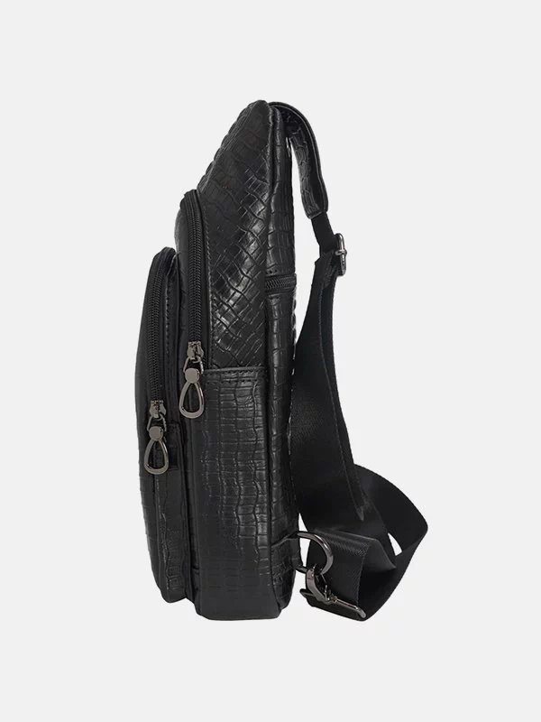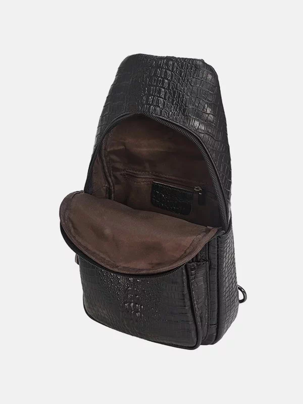 Малий чоловічий рюкзак BB-075 – оптимальне рішення для речей, будь-яких дрібниць (ключів, павербанків, навушників, смартфонів, зарядних пристроїв тощо). Пошитий з чорної фактурної натуральної шкіри «під крокодила». Невибагливий за доглядом, має акуратний вигляд, якісний пошив. Користується значною популярністю на українському ринку. Країна виробник бренду – Китай.