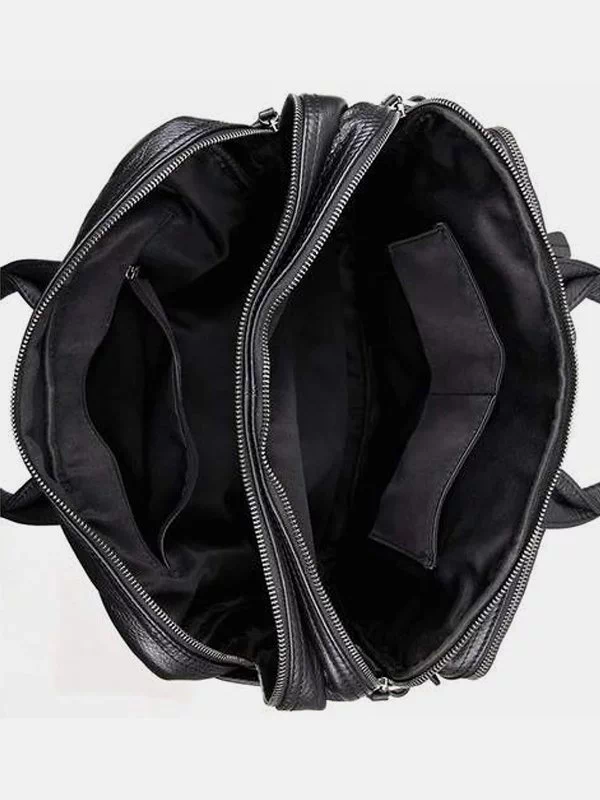 Чёрный кожаный деловой портфель для документов и ноутбука