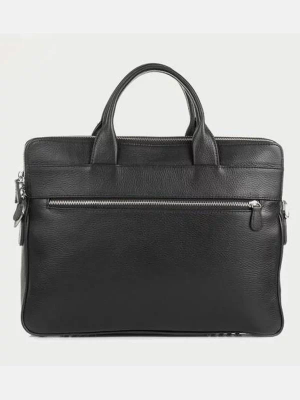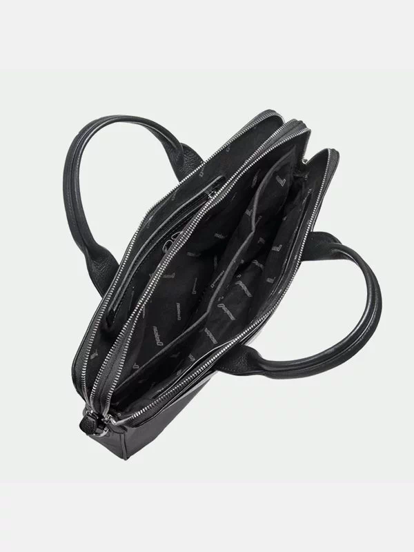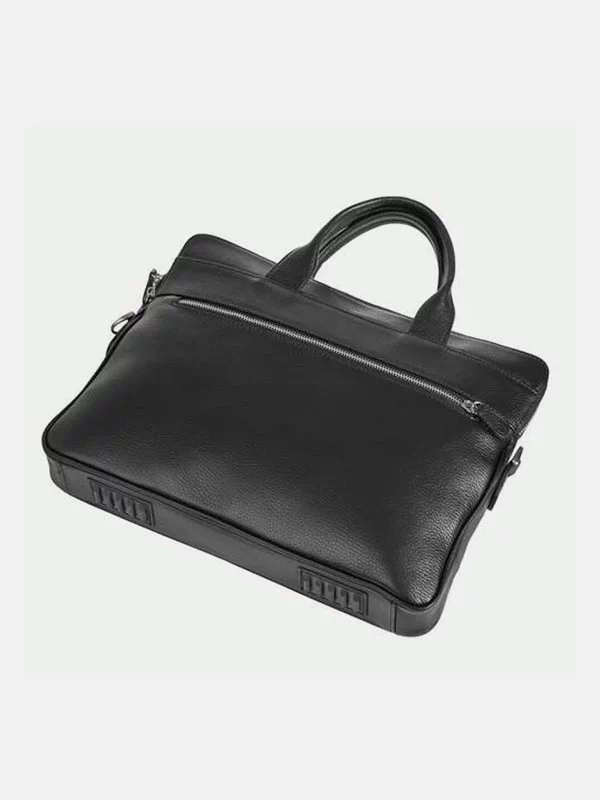 Чёрный кожаный деловой портфель для документов и ноутбука