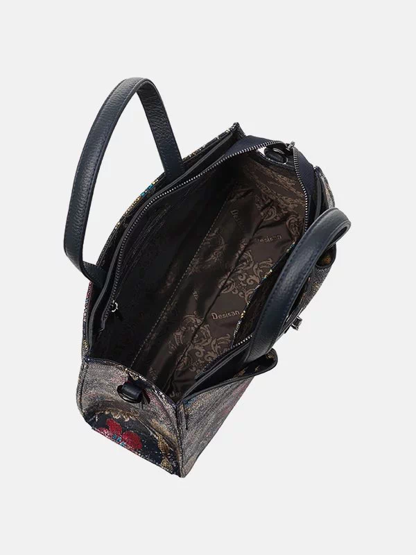 Жіноча сумка D-4315 – вдалий вибір для невеликих речей, грошей, будь-яких дрібниць (косметики, ключів, павербанків, навушників, смартфонів, зарядних пристроїв тощо). Пошита з синьої фактурної натуральної шкіри з лаковим напиленням та квітковим візерунком. Сумка невибаглива за доглядом, має акуратний зовнішній вигляд, якісний пошив. Вигідно доповнить практично будь-який образ. Країна виробник – Туреччина.