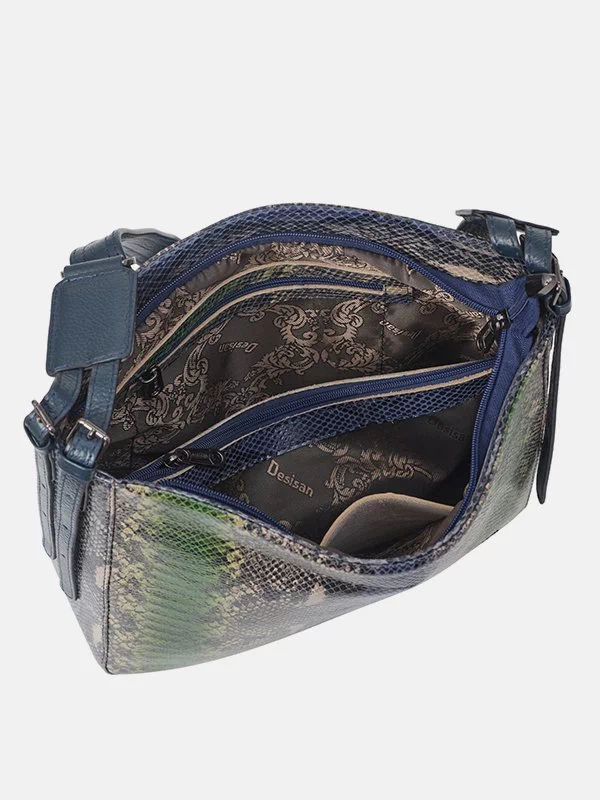 Жіноча сумка D-6199 – розумний варіант для речей, грошей, будь-яких дрібниць (косметики, ключів, павербанків, навушників, смартфонів, зарядних пристроїв тощо). Пошита з фактурної натуральної шкіри «під змію» з лаковим напиленням у кількох кольорах. Сумка невибаглива за доглядом, має акуратний зовнішній вигляд, якісний пошив. Вигідно підкреслить практично будь-який образ. Країна виробник – Туреччина.