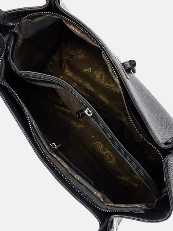 Жіноча сумка D-6301 – надійний варіант для речей, грошей, будь-яких дрібниць (косметики, ключів, павербанків, навушників, смартфонів, зарядних пристроїв тощо). Пошита з зернистої натуральної шкіри флотар чорного кольору. Сумка невибаглива за доглядом, має ефектний вигляд, якісний пошив. Вдало підкреслить практично будь-який образ. Країна виробник – Туреччина.