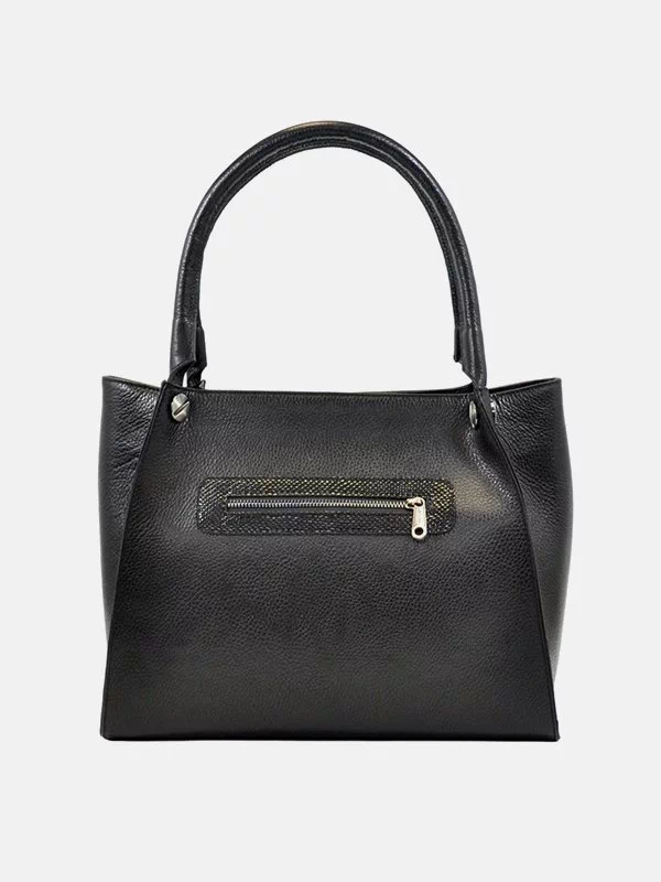 Черная сумка из фактурной натуральной кожи «под крокодила»