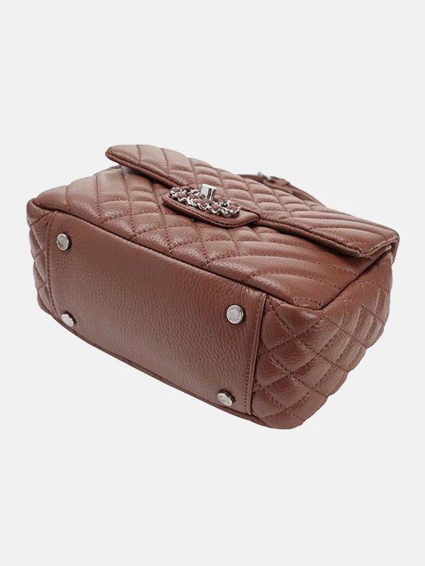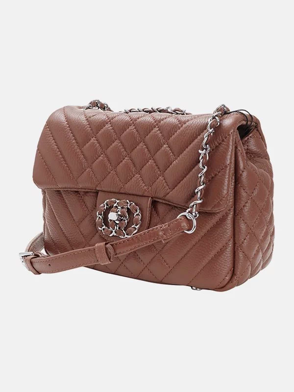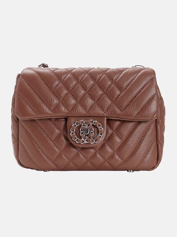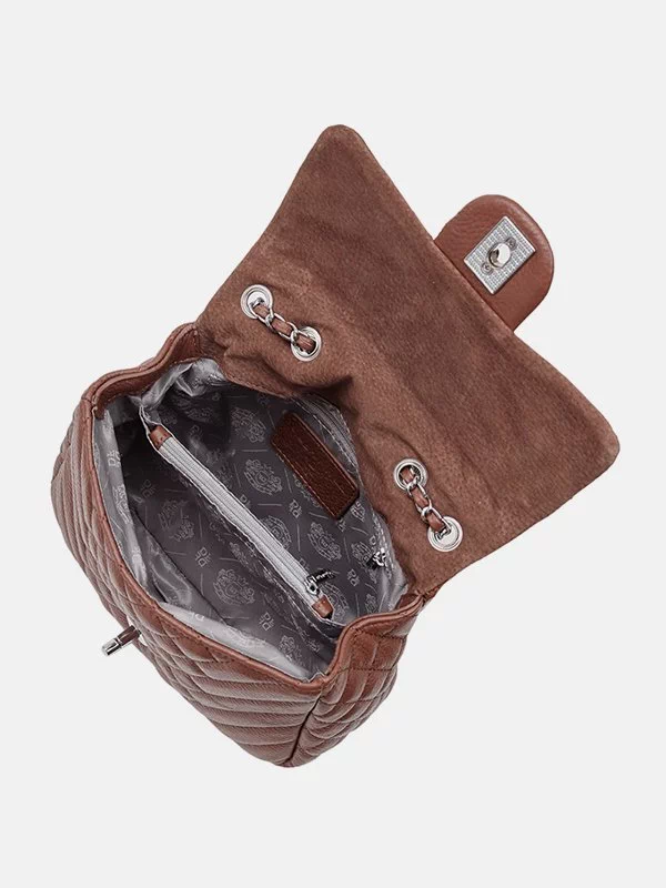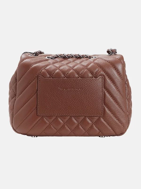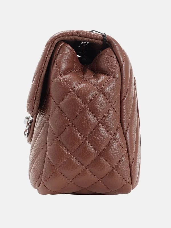 Жіноча сумка DF-043K – безпрограшне рішення для грошей, будь-яких дрібниць (косметики, ключів, павербанків, навушників, смартфонів, зарядних пристроїв тощо). Пошита зі стьобаної коричневої натуральної шкіри. Кросбоді невибаглива за доглядом, має акуратний зовнішній вигляд, якісний пошив. Вигідно доповнить практично будь-який образ. Країна виробник бренду – Німеччина.
