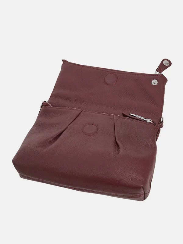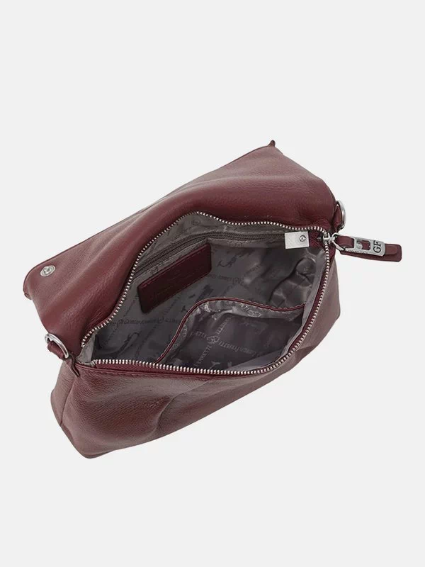 Жіноча сумка GF-738 – безпрограшний варіант для грошей, будь-яких дрібниць (косметики, ключів, павербанків, навушників, смартфонів, зарядних пристроїв тощо). Пошита з бордової фактурної натуральної шкіри флотар. Кросбоді невибаглива за доглядом, має елегантний зовнішній вигляд, якісний пошив. Вдало підкреслить практично будь-який образ. Країна виробник бренду – Італія.
