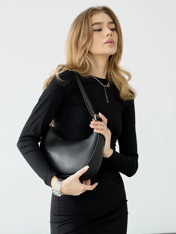 -40%Елеганта мінімалістична жіноча сумка-багет у чорному виконанні на всі випадки життя.