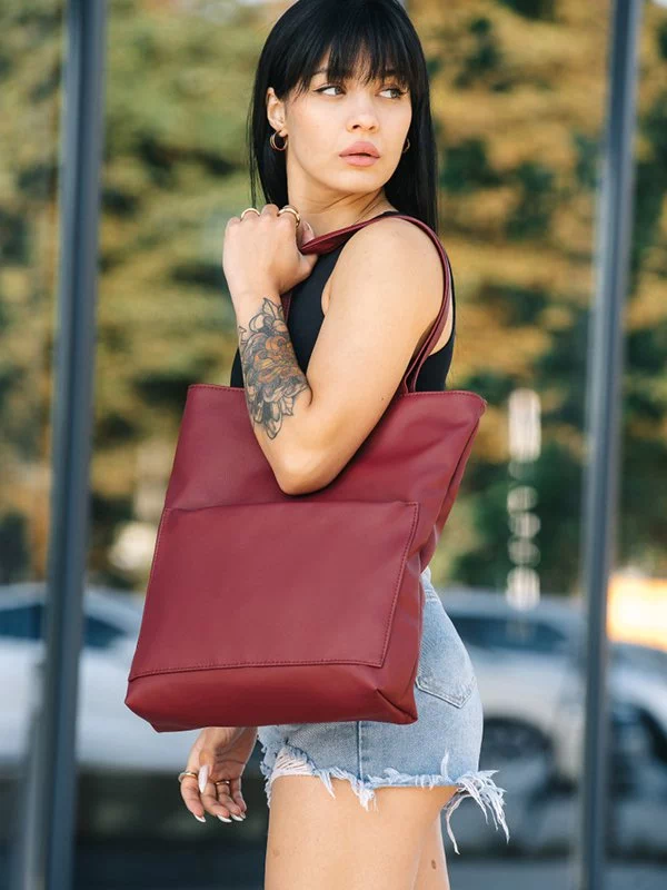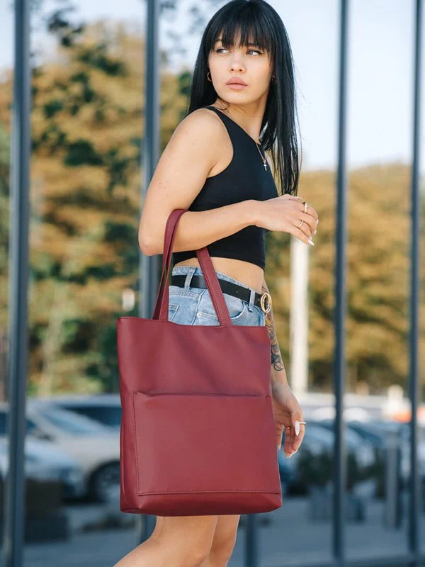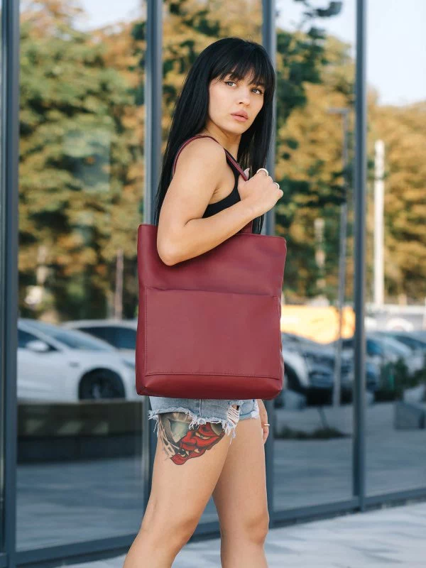 Цікава жіноча сумка-шопер у бордовому виконанні на всі випадки життя.