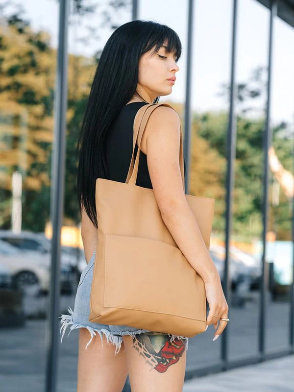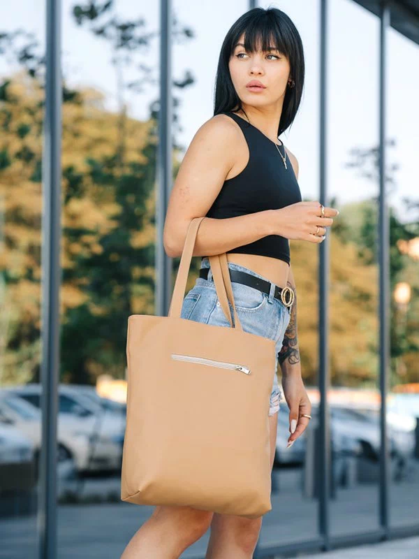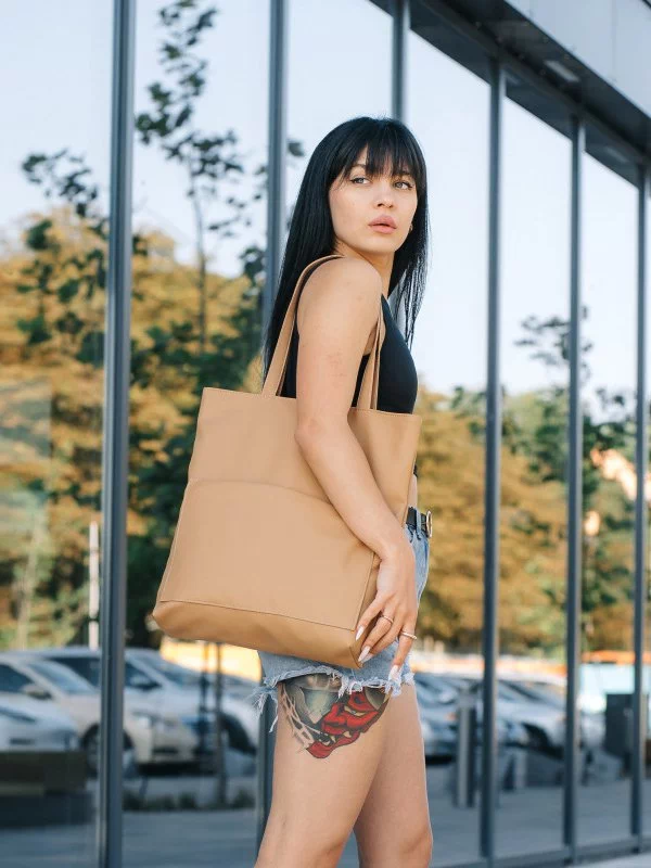 Трендова жіноча сумка-шопер у бежевому виконанні на всі випадки життя.