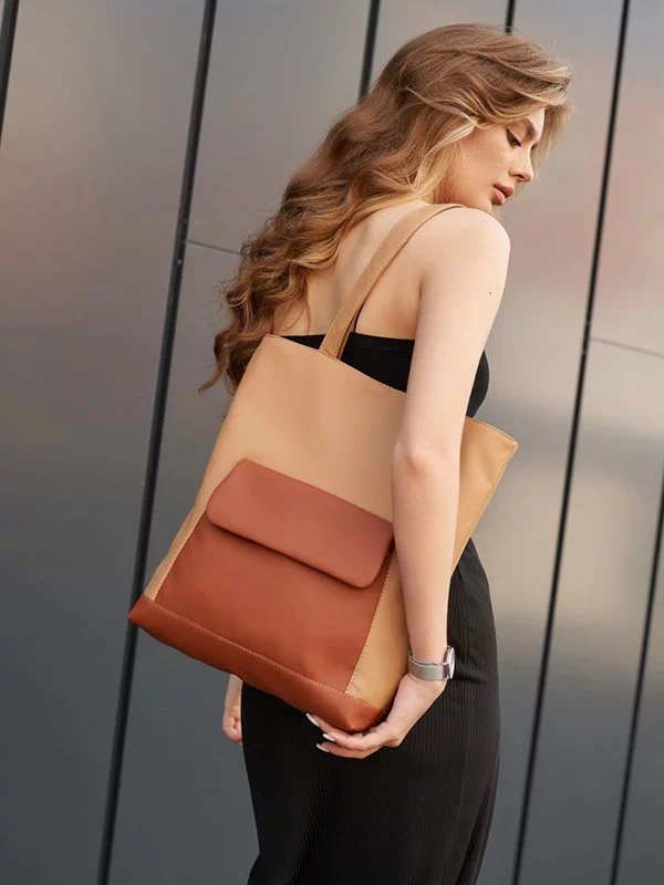 Дизайнерська жіноча сумка-шопер у коричнево-бежевому кольорі на будь-які випадки життя.