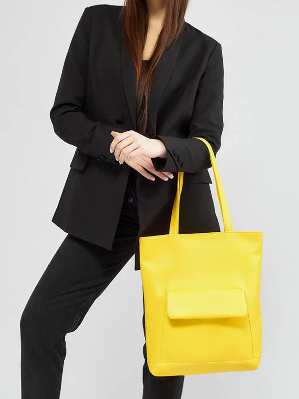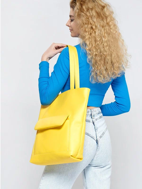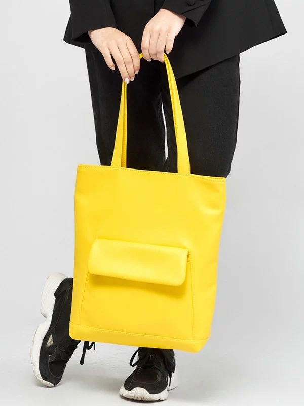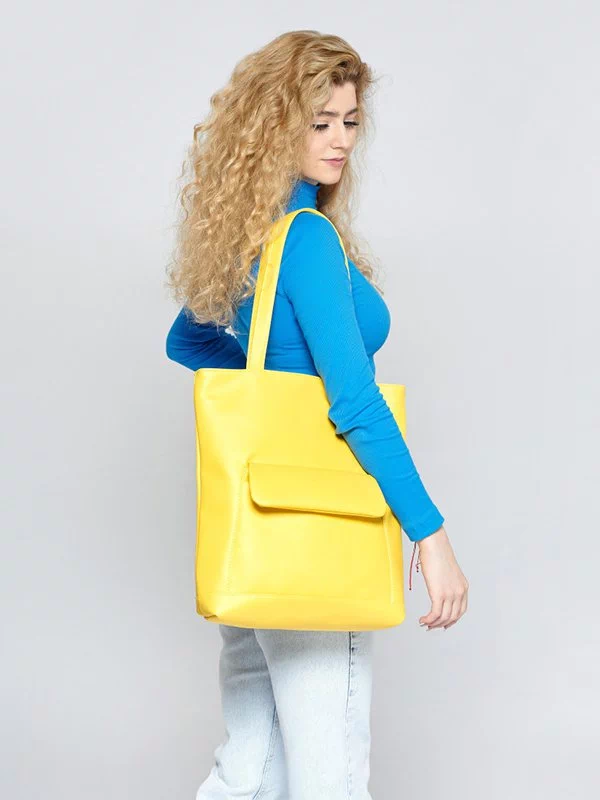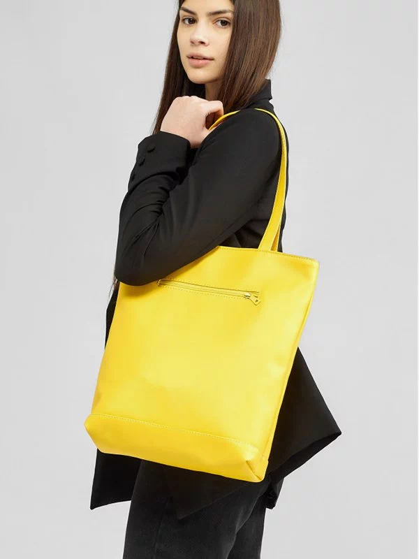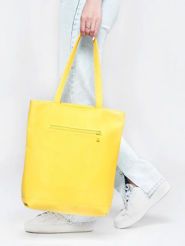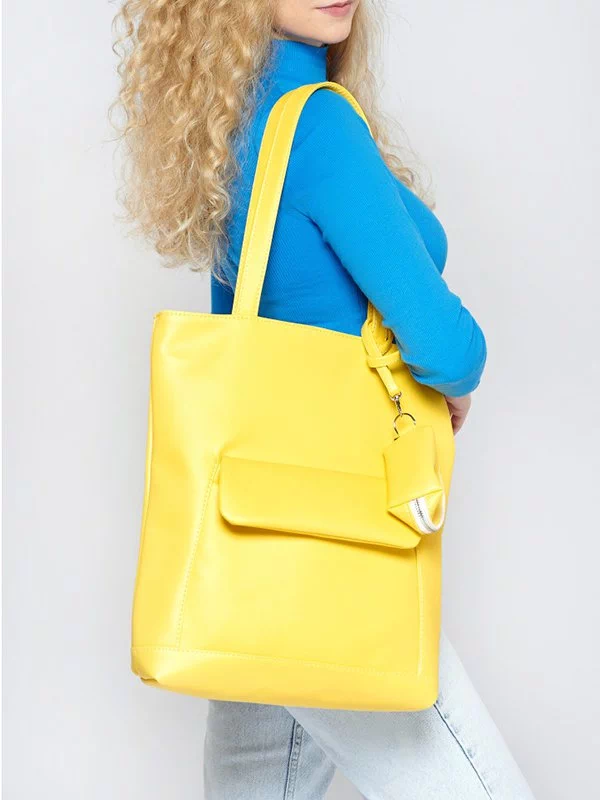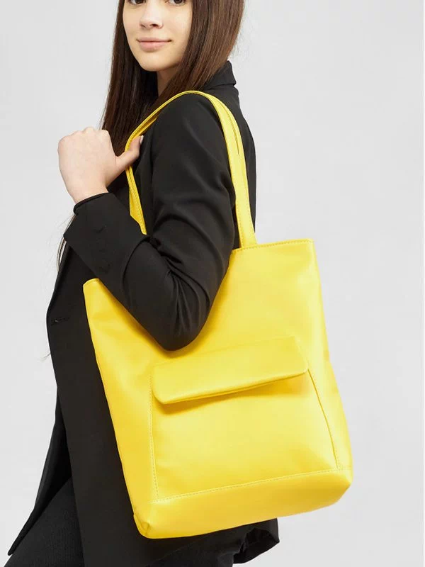 Жовта сумка-шопер з кишенею на магніті з еко-шкіри