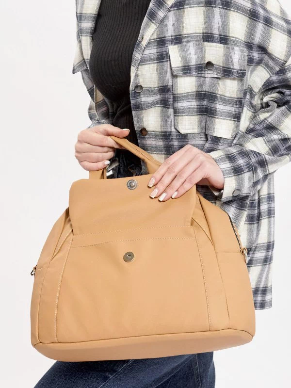 Шикарна жіноча сумка бежевого кольору на будь-які випадки життя.
