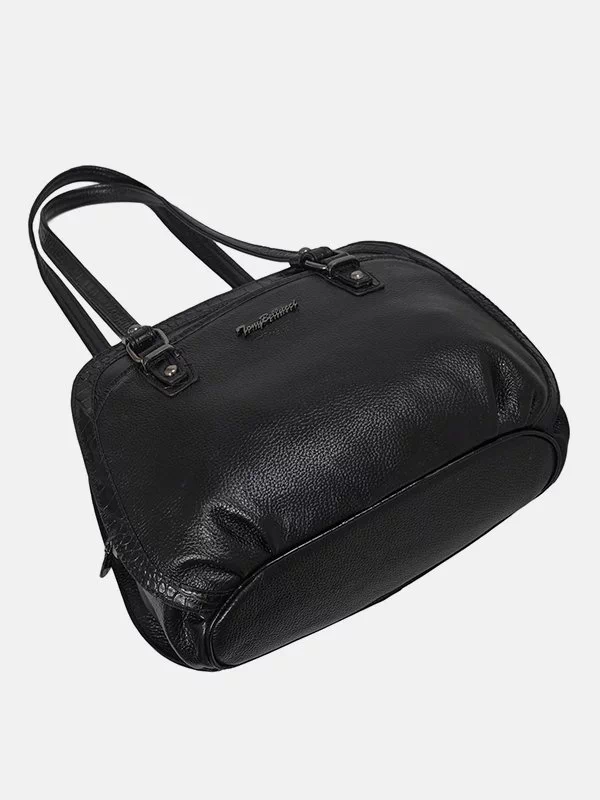 Жіноча сумка TB-1528 – розумний варіант для речей, грошей, будь-яких дрібниць (косметики, ключів, павербанків, навушників, смартфонів, зарядних пристроїв тощо). Пошита з чорної фактурної натуральної шкіри флотар. Сумка невибаглива за доглядом, має акуратний вигляд, якісний пошив. Вдало підкреслить практично будь-який образ. Країна виробник – Туреччина.