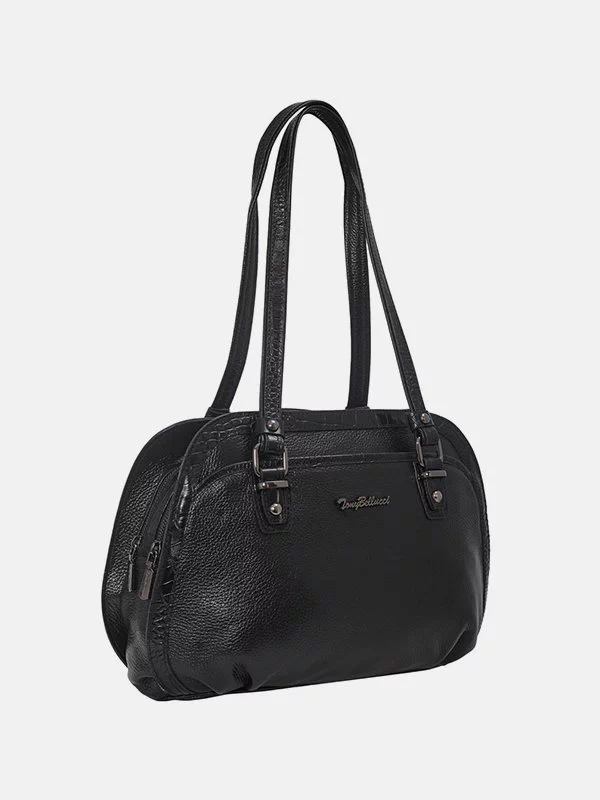Женская сумка TB-1528 – разумный вариант для небольших вещей, денег, различных мелочей (косметики, ключей, павербанков, наушников, смартфонов, зарядных устройств и т.п.). Пошита из черной зернистой натуральной кожи флотар. Сумка неприхотлива в уходе, имеет аккуратный внешний вид, качественный пошив. Удачно подчеркнет практически любой образ. Страна производитель бренда – Турция.