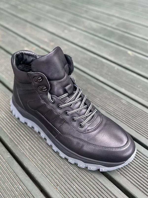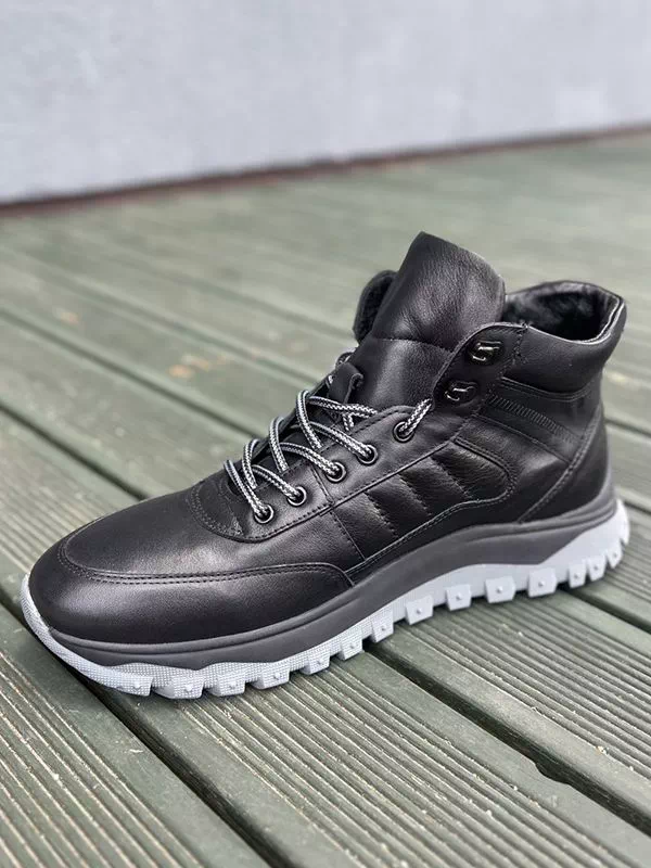 Зимові хайтопи чорного кольору з натуральної шкіри