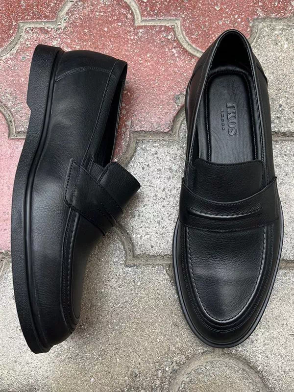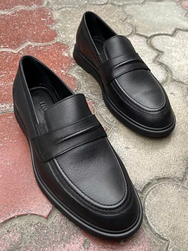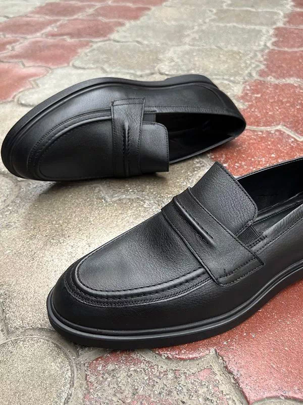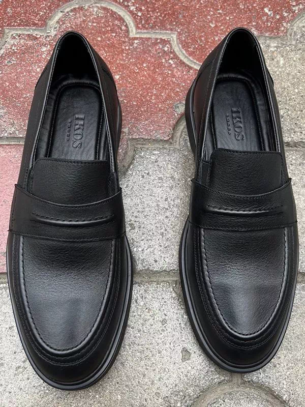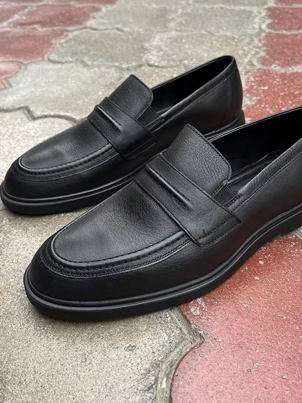 Яркие классические мужские лоферы в черном исполнении на все случаи жизни.
