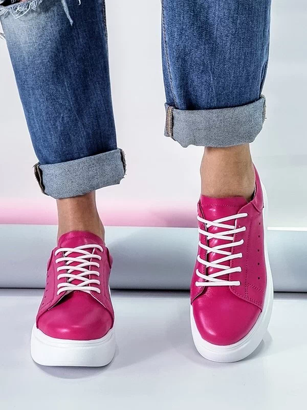 Be the first to review “Малинові шкіряні кеди з бічною декоративною перфорацією”