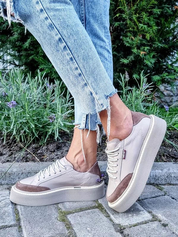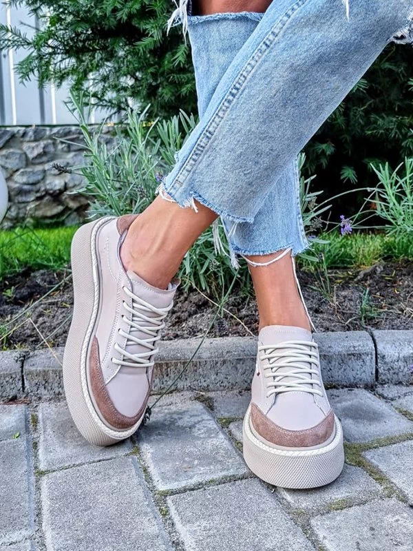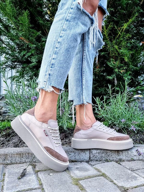Темно-бежеві зимові кеди з натуральної шкіри та замші