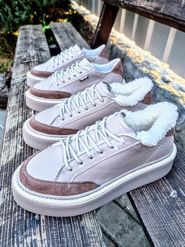 Цікаві зимові жіночі кеди у темно-бежевому виконанні (візон) на всі випадки життя.